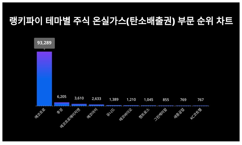 [출처: 랭키파이 테마별 주식 온실가스(탄소배출권) 부문 트렌드 테이블]