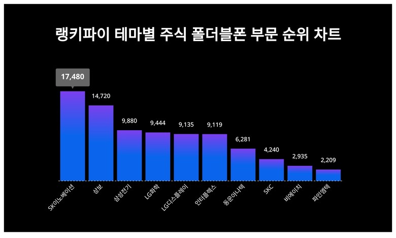 [출처: 랭키파이 테마별 주식 폴더블폰 부문 트렌드 테이블]