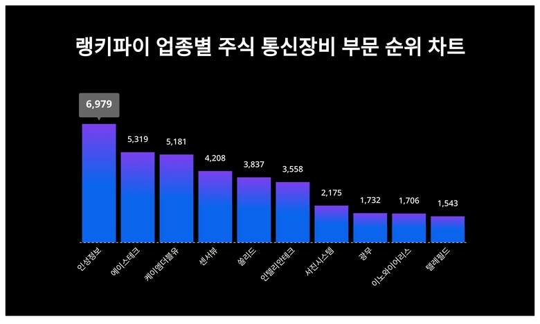 [출처: 랭키파이 업종별 주식 통신장비 부문 트렌드 테이블]