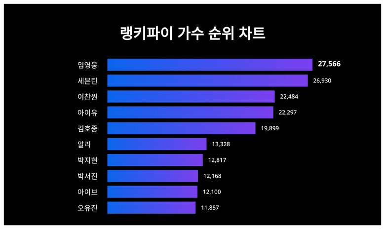 | 1 | 임영웅 | 27,566 | 33,765 | -6,199 | -18.4% |