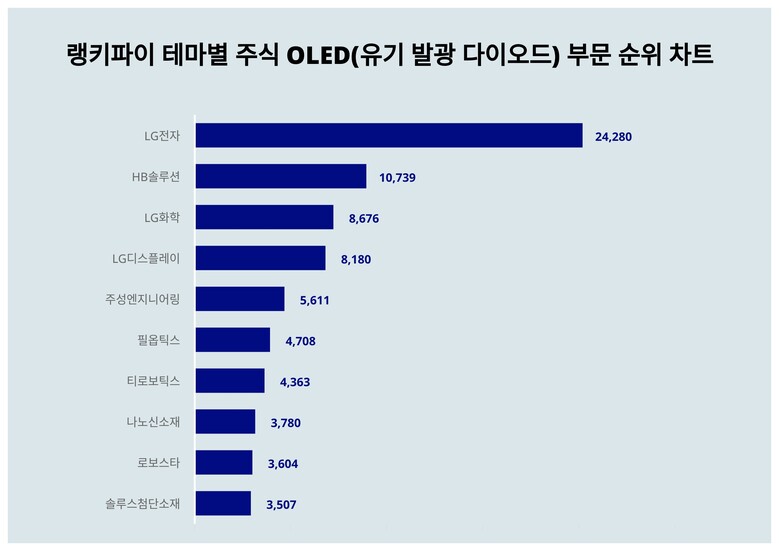 [출처: 랭키파이 테마별 주식 OLED(유기 발광 다이오드) 부문 트렌드 테이블]