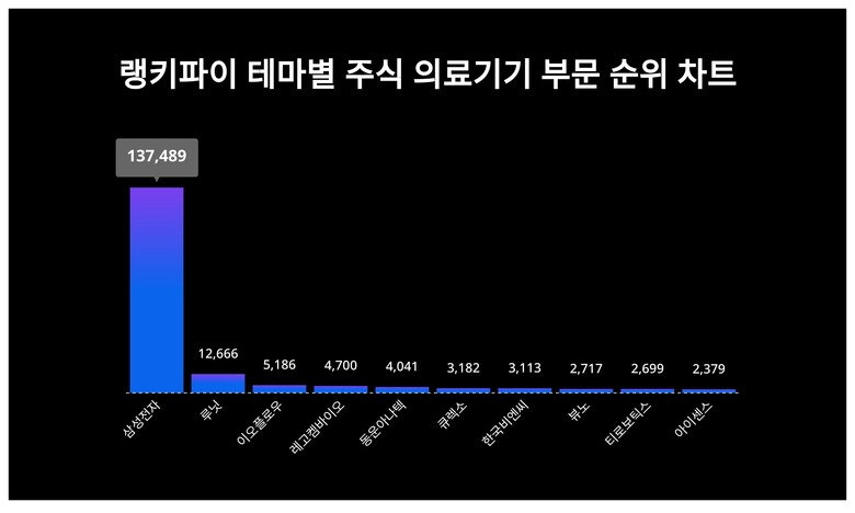 [출처: 랭키파이 테마별 주식 의료기기 부문 트렌드 테이블]