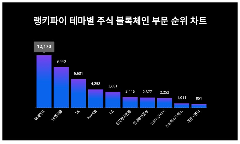 [출처: 랭키파이 테마별 주식 블록체인 부문 트렌드 테이블]