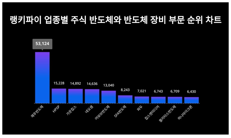 [출처: 랭키파이 업종별 주식 반도체와 반도체 장비 부문 트렌드 테이블]