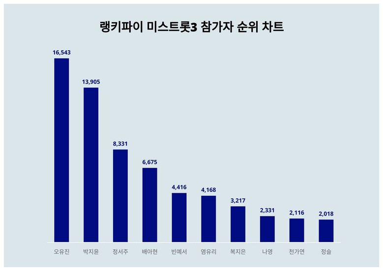 [출처: 랭키파이 미스트롯3 참가자 트렌드 테이블]