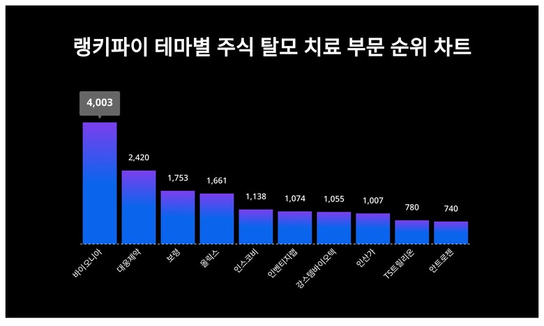 [출처: 랭키파이 테마별 주식 탈모 치료 부문 트렌드 테이블]