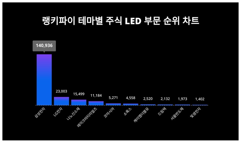 1위 삼성전자 주가·2위 LG전자 주가·3위 나노신소재 주가, 2월 4주차 테마별 주식 LED 부문 트렌드지수 순위 발표