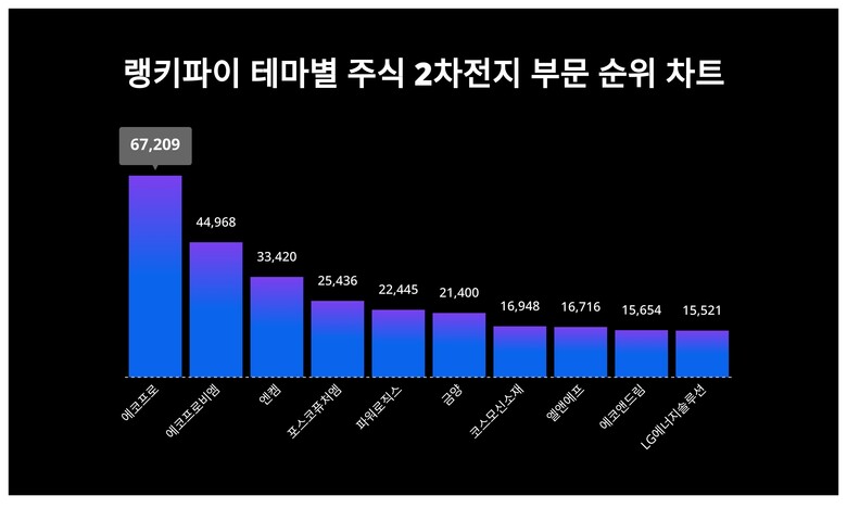 [출처: 랭키파이 테마별 주식 2차전지 부문 트렌드 테이블]