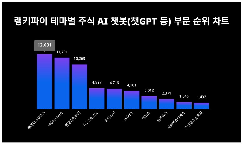 [출처: 랭키파이 테마별 주식 AI 챗봇(챗GPT 등) 부문 트렌드 테이블]