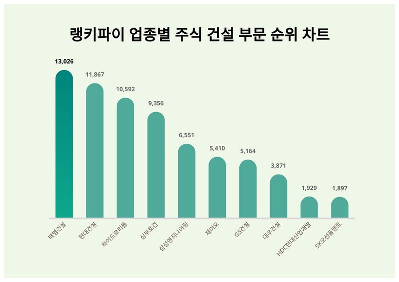 [출처: 랭키파이 업종별 주식 건설 부문 트렌드 테이블]
