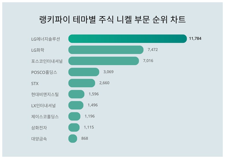 [출처: 랭키파이 테마별 주식 니켈 부문 트렌드 테이블]