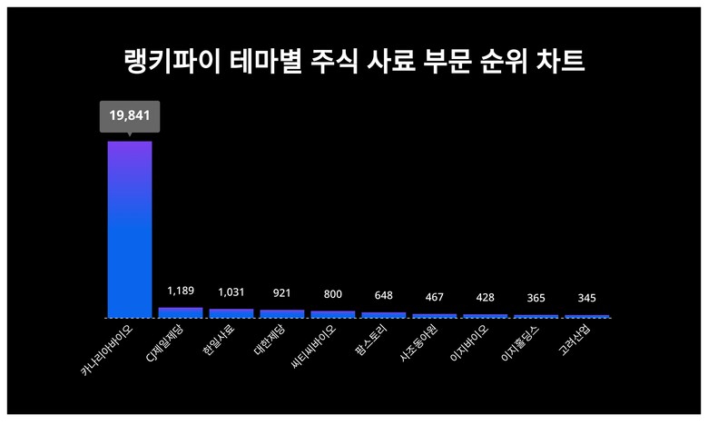 [출처: 랭키파이 테마별 주식 사료 부문 트렌드 테이블]
