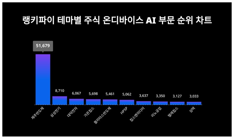 [출처: 랭키파이 테마별 주식 온디바이스 AI 부문 트렌드 테이블]